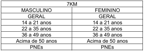Para a Prova de 7km estarão aptos a participar, atletas com idade mínima de 14 anos, completos até o dia 31/12/2026.