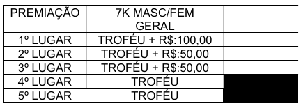 O atleta que receber premiação no Geral, automaticamente NÃO RECEBERÁ premiação nas faixas Etárias.