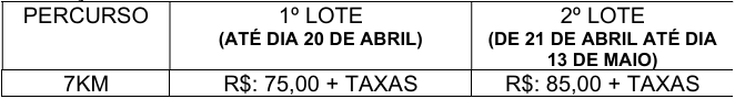 prazo de inscrições, serão aceitas novas inscrições sem direito ao kit.