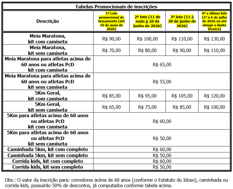 📌 Idade mínima: 18 anos (21km), 14 anos (5km), 10 anos (caminhada), 3 anos (Kids).