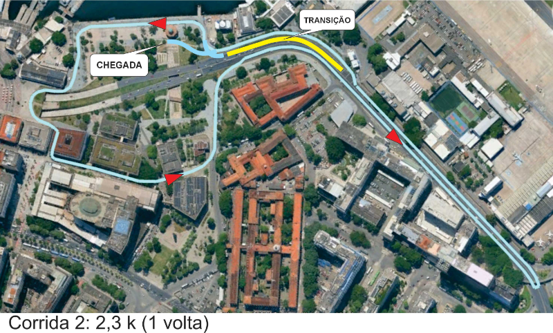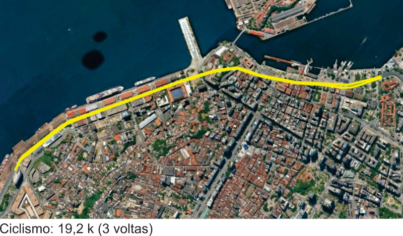 Adulto : 4,6 km de corrida x 19,2 km de ciclismo x 2,3 k de corrida