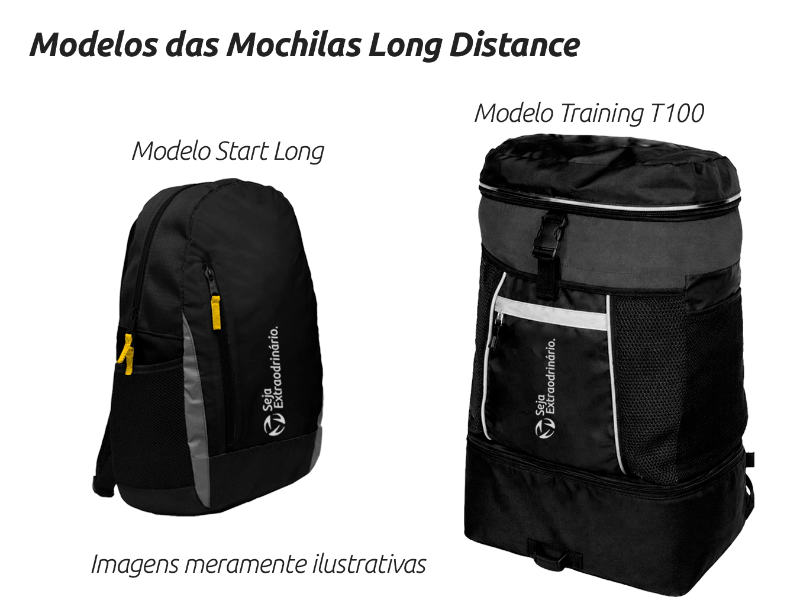 Promoção exclusiva: atletas inscritos nas provas Start Long e Training T100 que pagarem sua inscrição até o encerramento da ação promocional do lote 1 - Lançamento recebem automaticamente, sem custo adicional, a mochila oficial correspondente: