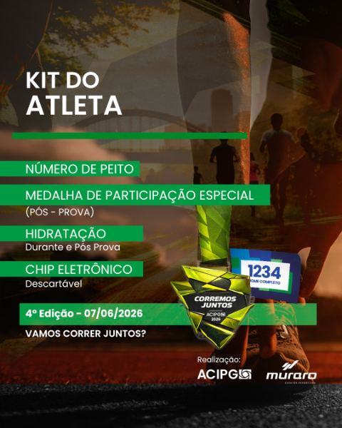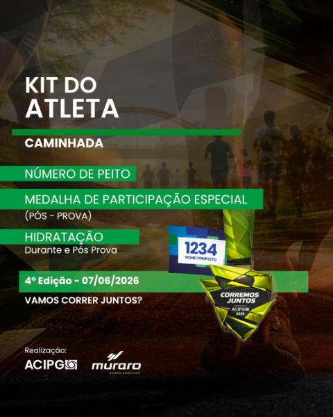 A Corremos Juntos - ACIPG, será disputada na cidade de PONTA GROSSA/PR, no dia 7 de Junho de 2026, a partir das 07h, por pessoas de ambos os sexos, devidamente inscritos, com qualquer condição climática.