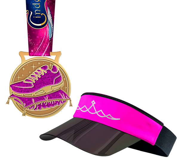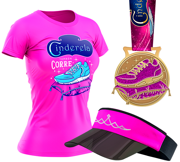 Após cumprir o desafio da Cinderela, enviaremos para a sua casa um kit exclusivo, que pode ter uma linda medalha, camiseta de poliamida, além de uma super viseira de aba transparente. Tudo com frete grátis.