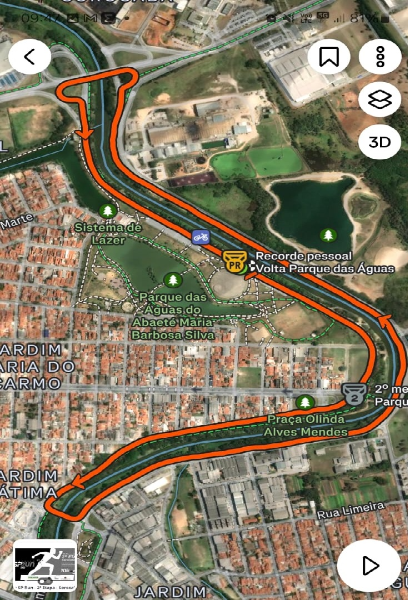 Largada no Parque das Águas, percorrendo a Marginal Dom Aguirre e retornando pela Avenida Quinze de Agosto.