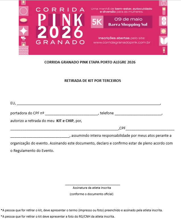 Veja o que você leva ao se inscrever na etapa de Porto Alegre do Circuito Granado Pink 2026: