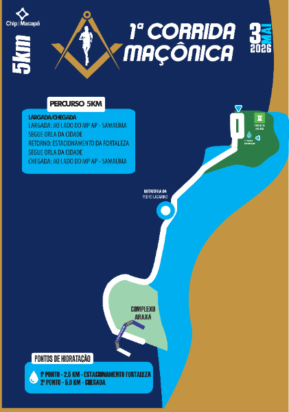 🏃♂️ Com largada ao lado do Ministério Público em Macapá/AP, no dia 03 de maio de 2026 (domingo), a prova de 5 km terá início às 6h15 e tempo máximo de 2h para conclusão.