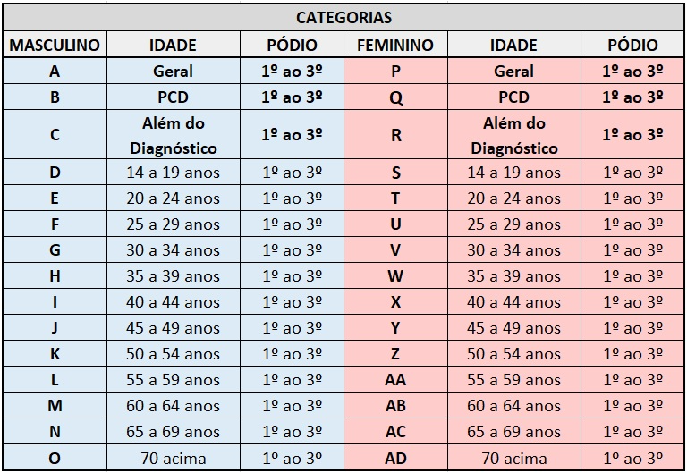 • Os TRÊS primeiros colocados masculino e feminino das categorias por FAIXA ETÁRIA na prova de 5Km receberão troféus.