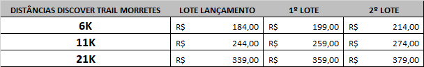 As inscrições serão encerradas no dia 11/05 (online), ou até o limite técnico de participantes. Sob análise técnico a organização poderá abrir ou não vagas extras, redistribuir as vagas entre as distâncias, encerrar os lotes, ou kits sem aviso prévio. Não serão realizadas inscrições fora do prazo determinado.