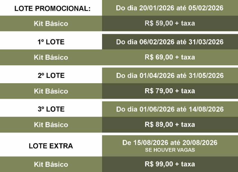 - BÁSICO: Numeral / Chip / Medalha / Sacola