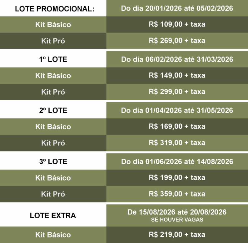- PRO: Numeral / Chip / Medalha / Bolsa / Boné / Camisa casual