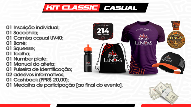 🚴♂️ PROVA CLASSIC – DOMINGO (05/07)Etapa única com 3 percursos:- PRO: 100 km | 1.800m de altimetria- SPORT: 50 km | 800m de altimetria- LIGHT: 20 km | 200m de altimetria🏆 CATEGORIAS:A partir dos 12 anos, divididas por faixa etária, gênero, peso e tipo de percurso. Também disponíveis categorias para duplas (masculina, feminina e mista), turismo e iniciantes.